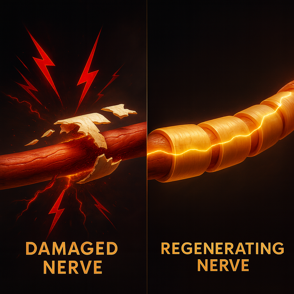 - Supports repair of the protective nerve coating (myelin) that keeps pain from coming back.