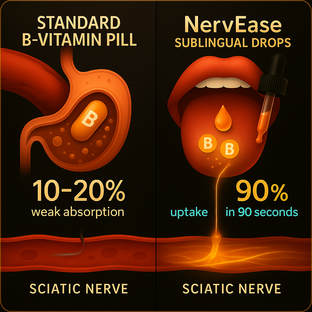 You’ve stretched, massaged, tried to walk it off, but that burning, stabbing ache just won’t quit. When the sciatic nerve gets inflamed, every signal it sends feels like fire running down your leg. NervEase helps calm that overreaction and support your body’s natural repair, so your nerves can finally rest and stop screaming.